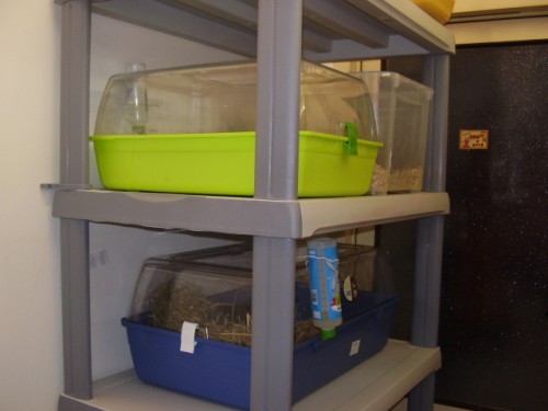 Tak jsem nahrála fotky a zjistila, že jsou starší, mám tam i jednu klec.Boxy, jelikož jsou nákladné jsem pořizovala postupně, takže tady spíš vidíte jak já říkám porodnice a nějaký ten plastbox. Jak bude čas nafotím stávající bydlení.