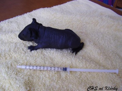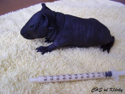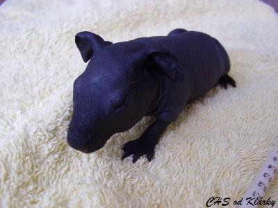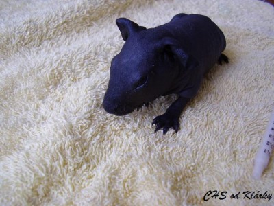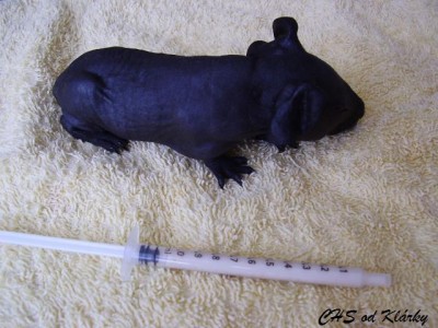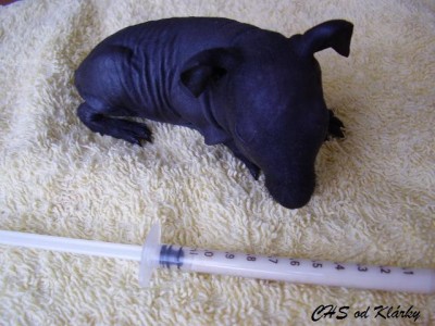 Moje černá holčička bojuje, stejně, jako bojovala Eliska. Vy, kdo sledujete pravidelně naše stránky si na ní určitě vzpomenete. S váhou na tom byla ještě hůře než Keiko a teď už je z ní určitě krásná slečna, která bydlí na slovensku. Keiko už předběhla svoji porodní váhu (84g) , dnes váží již 93g. Dokrmujeme stále ve dne i v noci, moc toho pravda nenaspím, ale to krásné zlatíčko, které vždy najdu ráno v pořádku mi to vynahrazuje:))) První naše černá holčička bydlí v CHS ze Dvora, jmenuje se Gina a už má tři kartičky čekatele na šampiona. Třeba posbírá i Keiko pár kartiček, pokud bude krásná jako Ginuška, jak vyroste:-) Tohle je ale budoucnost, nejprve musím moji malou holčičku "dopiplat" aby z ní byla krásná samostatná slečna:))) Tady je pár fotek malé Keiko s její umělou mámou.